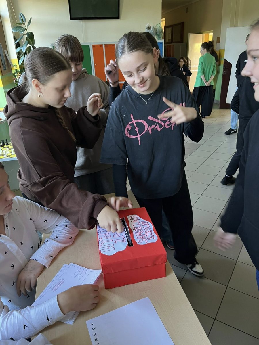 Wybory do Samorządu Uczniowskiego 2025/2026 przez admin | 25 września, 2025 0 komentarzy Wybory do Samorządu Uczniowskiego 2025/2026 już za nami! W głosowaniu wzięło udział aż 50 uczniów z klas IV–VIII, co daje frekwencję na poziomie 86,2% Nowe funkcje w Samorządzie objęli: Przewodniczący – Potomski Tobiasz Zastępca przewodniczącego – Rapta Nina Sekretarz – Sodytė Barbora Serdecznie gratulujemy zwycięzcom i życzymy owocnej pracy na rzecz całej społeczności szkolnej! 553517959_1331886502270919_5972307556701016084_n Zdjęcie 1 z 12