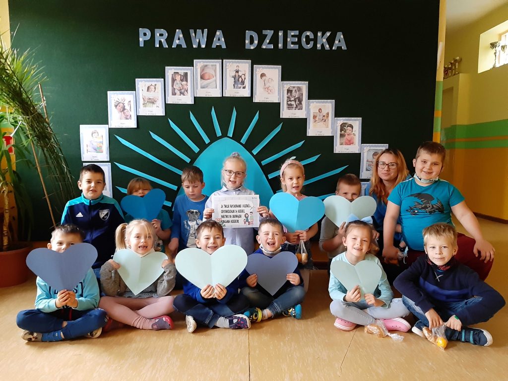 Z tej okazji w dniu 19 listopada nasi uczniowie i nauczyciele ubrali się na niebiesko, aby uczcić ten wyjątkowy dzień. Kolor niebieski jest symbolem solidarności ze wszystkimi dziećmi na całym świecie, nawet tam gdzie te prawa nie są respektowane.