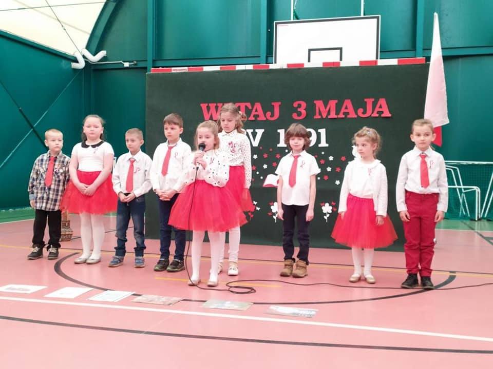 Z okazji zbliżających się świąt majowych nasze dzieci z oddziałów przedszkolnych uczestniczyły w Rajdzie Barw Narodowych zorganizowanym przez SP1 we współpracy z Referatem Promocji, Kultury i Sportu Gminy Miastko.