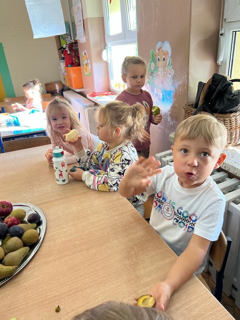Dzieci z oddziału przedszkolnego miały okazję zapoznać się z owocami, ich budową i wyglądem. Poznały różnice między poszczególnymi i rolę jaką spełniają w diecie człowieka. Następnie rysowały te owoce.