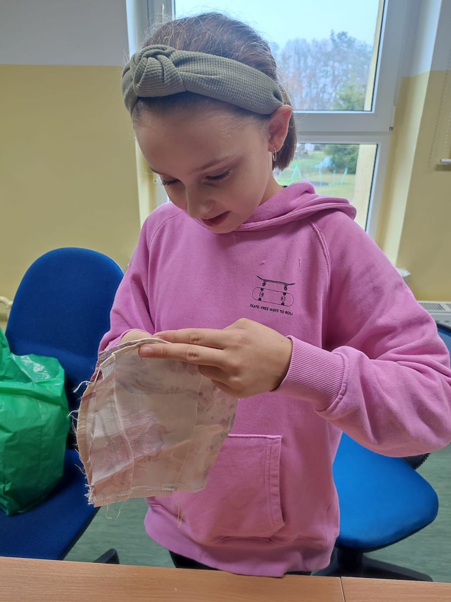 Dla niektórych uczniów było to pierwsze spotkanie ze ściegiem i łączeniem materiałów. Każdy przygotował dla siebie milutką podusię.