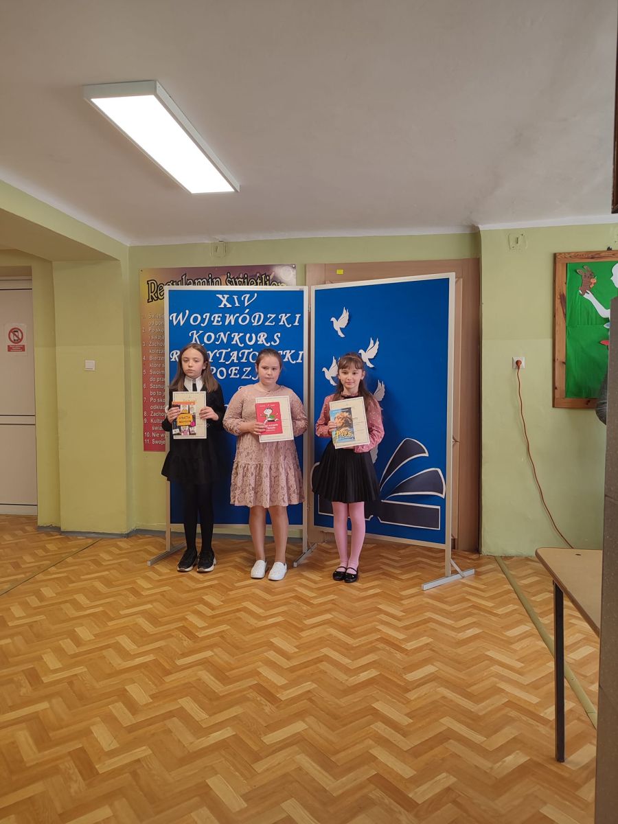Dzisiaj w Szkole Podstawowej nr 1 im. Mikołaja Kopernika w Miastku odbył się XIV Wojewódzki Konkurs Recytatorski poezji KS. J. Twardowskiego i naszą szkołę reprezentowały: Lena z klasy I, Zosia z klasy IV oraz Karolina z klasy VIII.