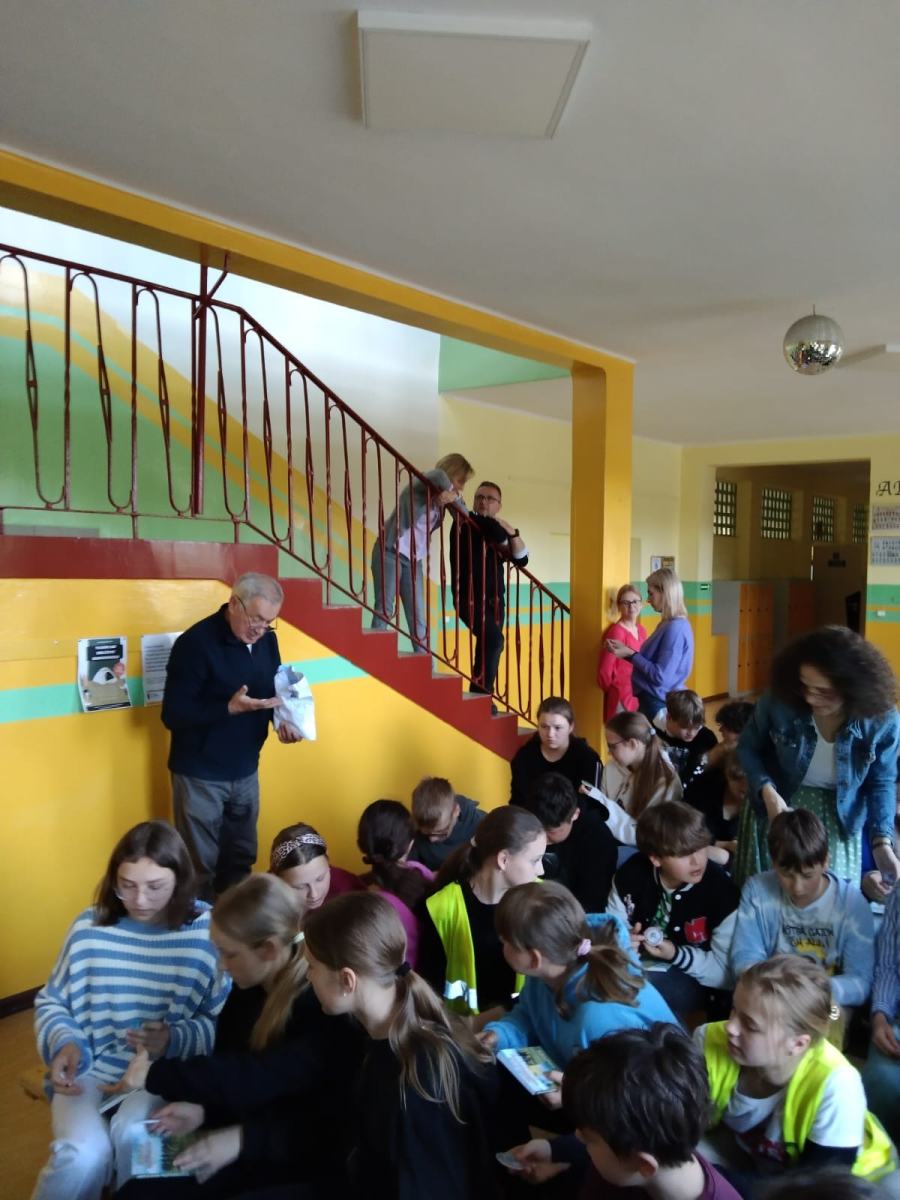 Szkolne koło PTTK zaprosiło dziś do naszej szkoły pana Janusza Grabowskiego, Prezesa Regionalnego Oddziału PTTK w Słupsku by opowiedział uczniom o działalności stowarzyszenia, zachęcił do wyjazdów nie tylko w najdalsze zakątki naszego kraju ale i do poznawania okolicy. Jak przekonywał nasz gość, mamy niezwykłe szczęście mieszkać w miejscu charakteryzującym się czystym powietrzem, bogatym w lasy a więc idealnym do uprawiania turystyki pieszej.