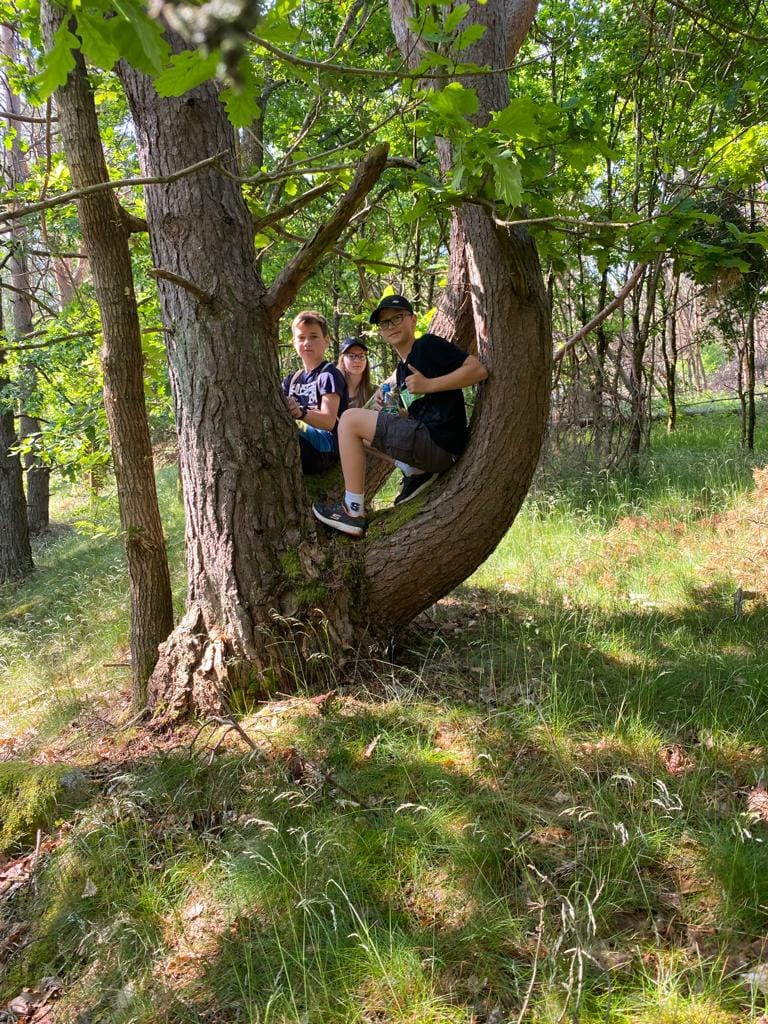 Po drodze wykonywali różne zadania (rozwiązywali krzyżówki, układali puzzle, tworzyli budowle z materiałów, które dostarczyła przyroda). Energia i humory dopisały. Spotkanie zakończyliśmy przy ognisku.