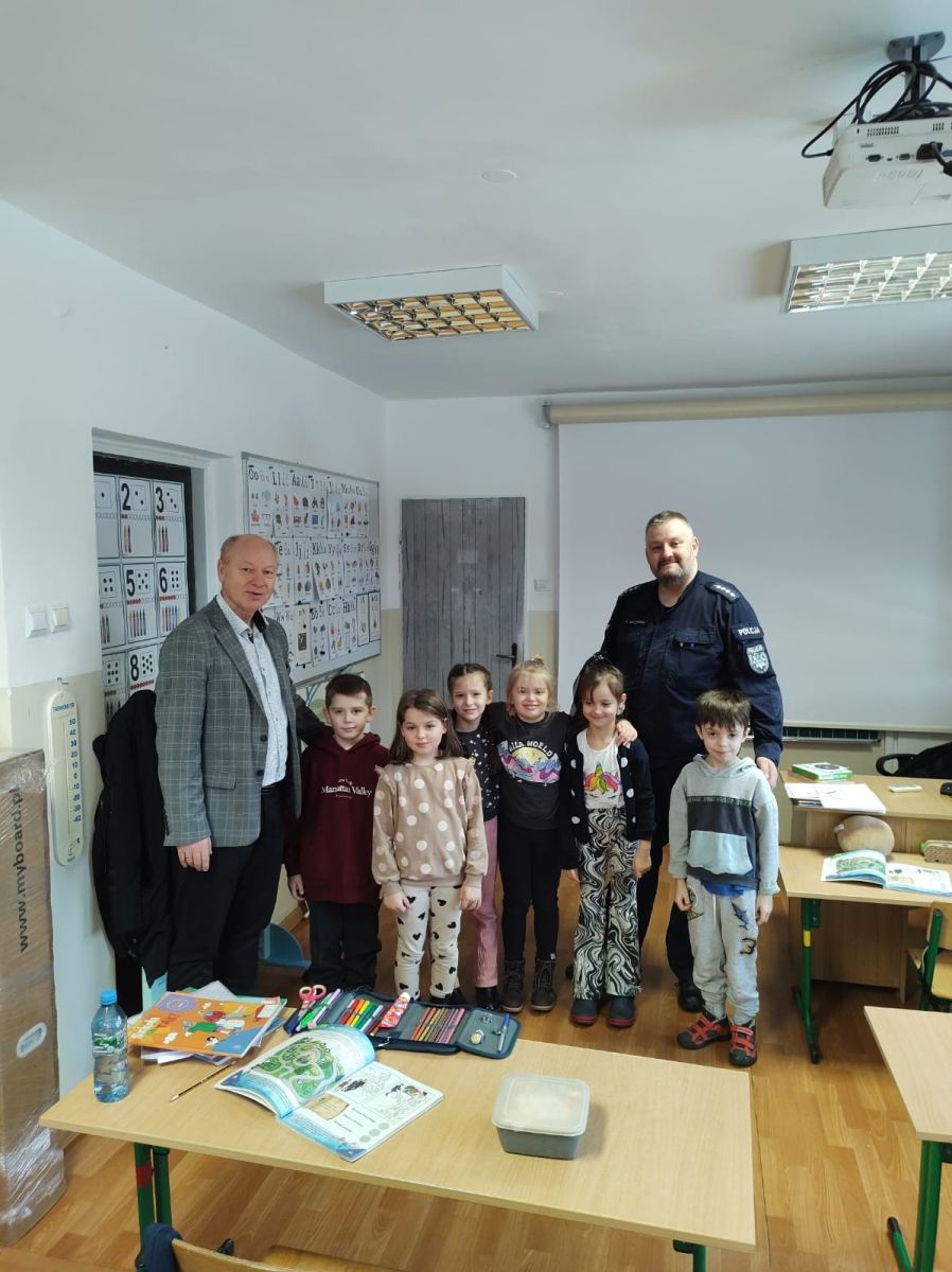Bezpieczne ferie przez admin | 15 stycznia, 2024 0 komentarzy Dzisiaj najmłodszych uczniów naszej szkoły odwiedzili Panowie Policjanci z pogadanką na temat ,,Bezpieczne ferie”. Przekazali uczniom infomacje, jak należy bezpiecznie bawić się i przebywać na śniegu oraz gdy pojawi się lód. 419837908_861869589272615_8495956713813784679_n Zdjęcie 1 z 1