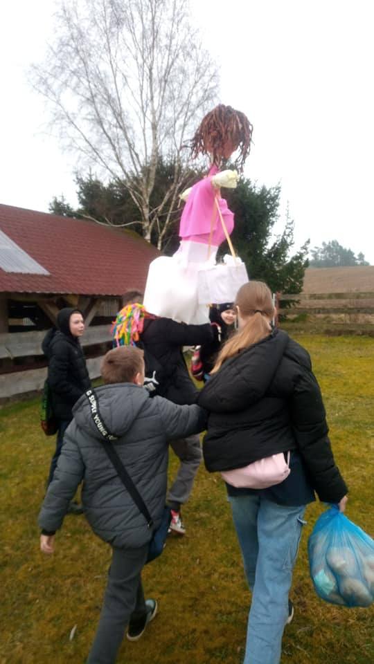 Pierwszy Dzień Wiosny klasa V i ich Marzanna. Żegnaj zimo.