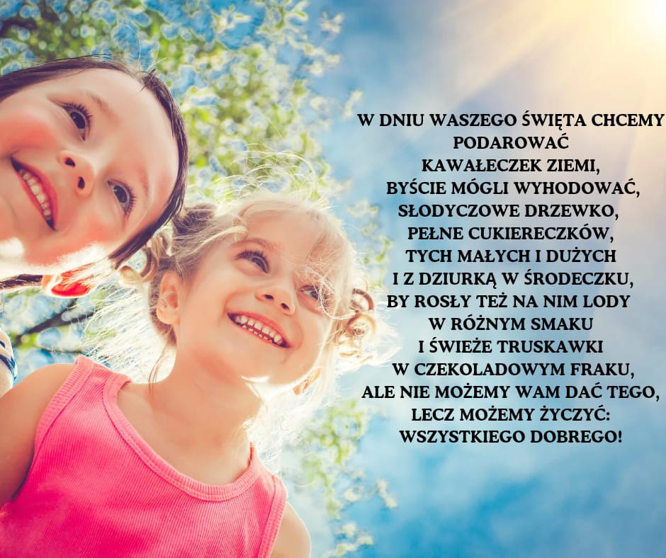 Dzień Dziecka przez admin | 1 czerwca, 2024 0 komentarzy Z okazji Dnia Dziecka życzymy tym małym i tym dużym wszystkiego co najpiękniejsze. Dużo uśmiechu na twarzy i słoneczka 445777567_952655316860708_4666868490193317528_n Zdjęcie 1 z 1