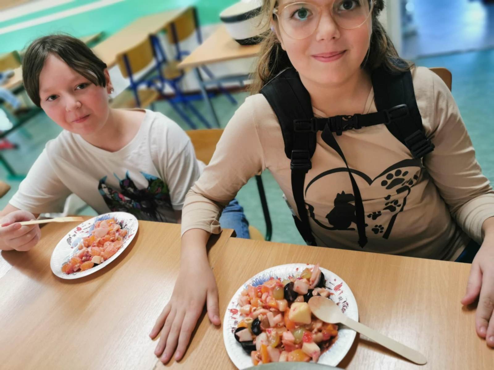„Witaminki, witaminki dla chłopaka i dziewczynki…” W ramach zajęć o zdrowym stylu życia, klasa IV przygotowała sałatkę owocową. Takie pyszności wyłącznie na WDŻ.