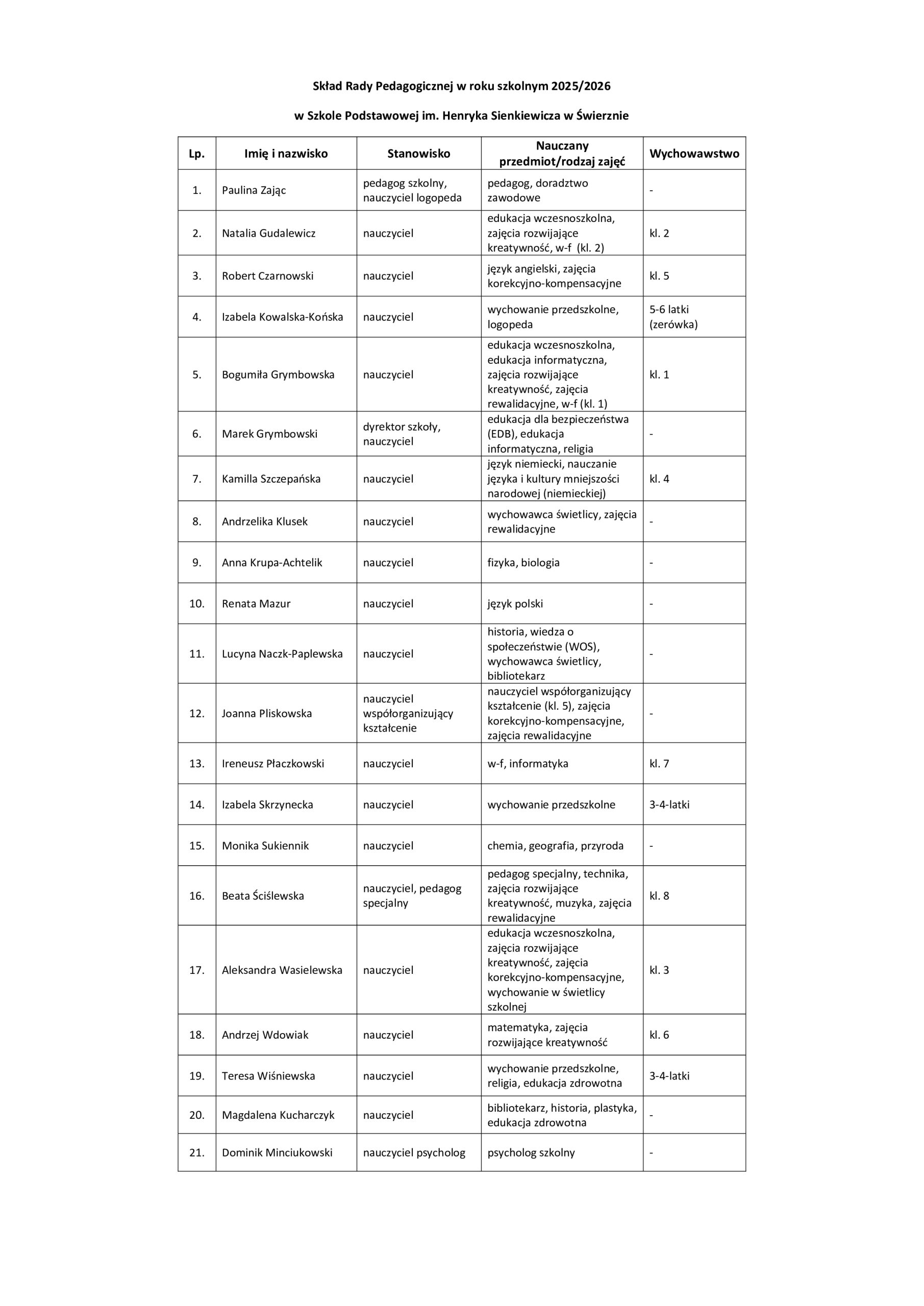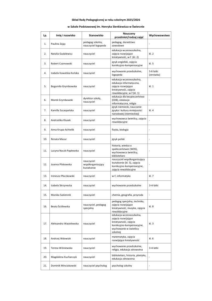 Kadra pedagogiczna