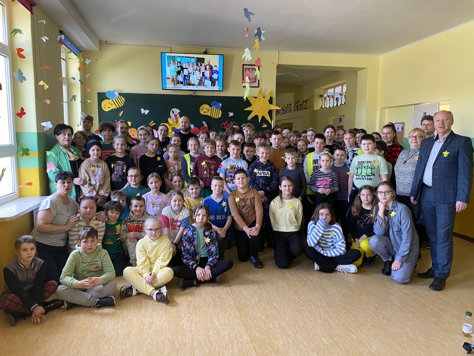 Pracownicy wraz z uczniami naszej szkoły postanowili uczcić rocznicę powstania pamiątkowymi zdjęciami z przypiętymi symbolicznie papierowymi żonkilami.