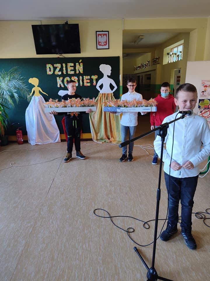 Chłopaki przygotowali się bardzo profesjonalnie, co świadczy o ich zaangażowaniu w przygotowanie i opisanie również kilku z najbardziej zasłużonych Kobiet na świecie. A najmłodsi uczniowie naszej szkoły zaśpiewali piosenkę.