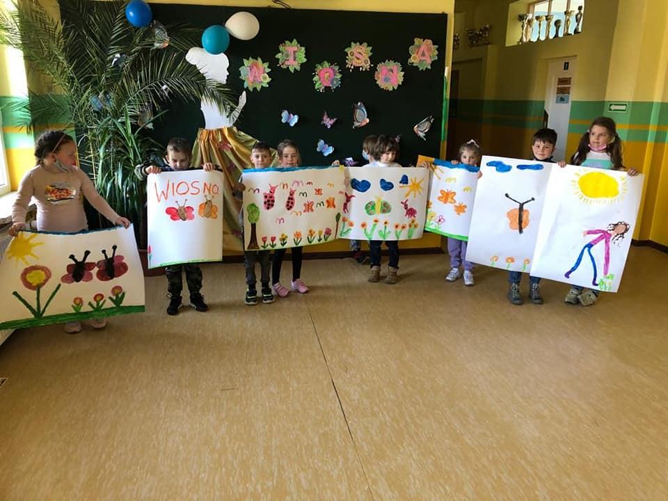 Pierwszy Dzień Wiosny w naszej szkole tym razem nieco inaczej. Na naszych uczniów czekało wiele atrakcji. Na początek Mini lista przebojów, w której pochwalić się mogli chętni uczniowie. Jury miało bardzo twardy orzech do zgryzienia. Bo nasi uczniowi zaprezentowali swoje talenty, a wybór zwycięzcy nie należał do łatwych. Do tego plakaty i krzyżówki z wiosennymi hasłami. Ale zabraknąć nie mogło przecież pożegnania zimy oraz przywitania wiosny. Kolorowy pochód z Marzannami, w pobliżu szkoły – każda klasa przygotowała swoją Marzannę, dopełnił całości a kto miał ochotę mógł przejechać się na koniku. Na zakończenie przepyszne kiełbaski prosto z ogniska. Uśmiech i radość dzieci bezcenne.