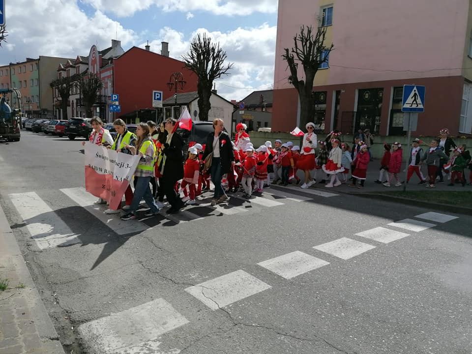 RAJD W BARWACH NARODOWYCH???? Gminna impreza dla uczczenia narodowego święta zgromadziła uczniów ze wszystkich szkół i przedszkoli. Idzie nas około 250 osób. Mali patrioci z naszej szkoły również uczestniczyli w marszu??.
