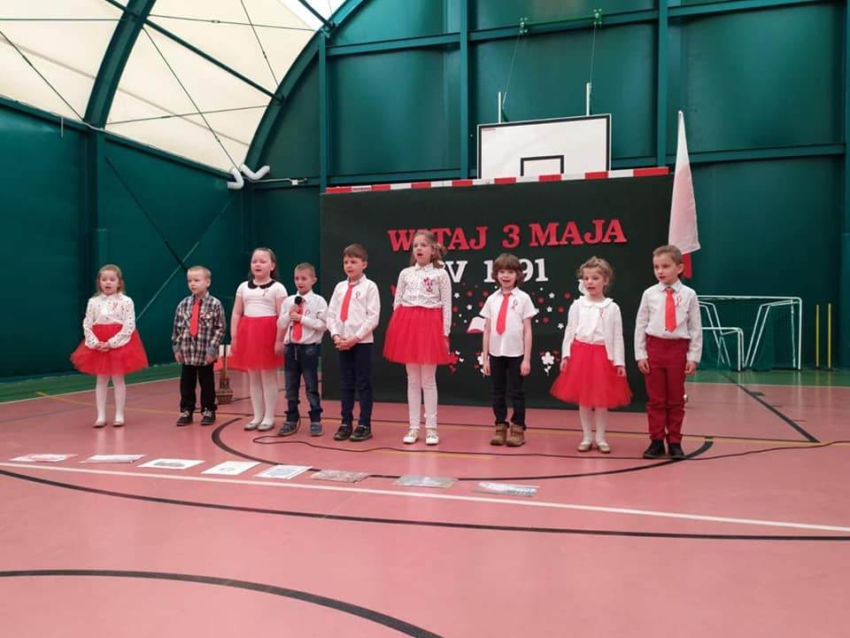 Z okazji zbliżających się świąt majowych nasze dzieci z oddziałów przedszkolnych uczestniczyły w Rajdzie Barw Narodowych zorganizowanym przez SP1 we współpracy z Referatem Promocji, Kultury i Sportu Gminy Miastko.