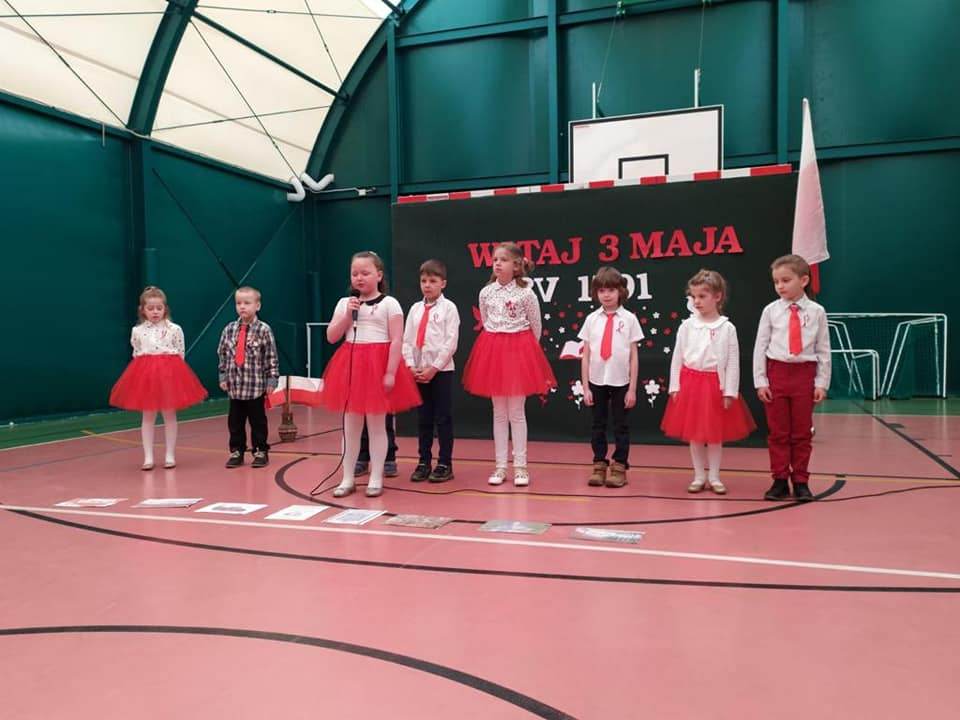 Z okazji zbliżających się świąt majowych nasze dzieci z oddziałów przedszkolnych uczestniczyły w Rajdzie Barw Narodowych zorganizowanym przez SP1 we współpracy z Referatem Promocji, Kultury i Sportu Gminy Miastko.