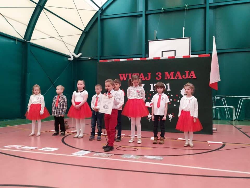 Z okazji zbliżających się świąt majowych nasze dzieci z oddziałów przedszkolnych uczestniczyły w Rajdzie Barw Narodowych zorganizowanym przez SP1 we współpracy z Referatem Promocji, Kultury i Sportu Gminy Miastko.