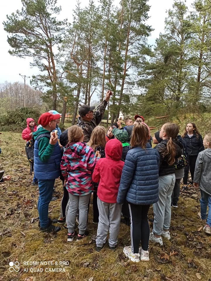 Uczniowie klas I-III wybrali się na wycieczkę do lasu. Pod opieką Pana leśniczego dzieci przeżyły wspaniałą lekcję przyrody na świeżym powietrzu. Dzięki tym zajęciom dzieci poszerzyły wiadomości o lesie i jego mieszkańcach. Lepiej poznały zasady ochrony przyrody i opieki nas zwierzętami i ptakami. Punktem końcowym wycieczki było ognisko, gdzie wszyscy ze smakiem zajadali upieczona kiełbaskę. Wszystkie dzieci były zachwycone i do szkoły wróciły w dobrym humorze.