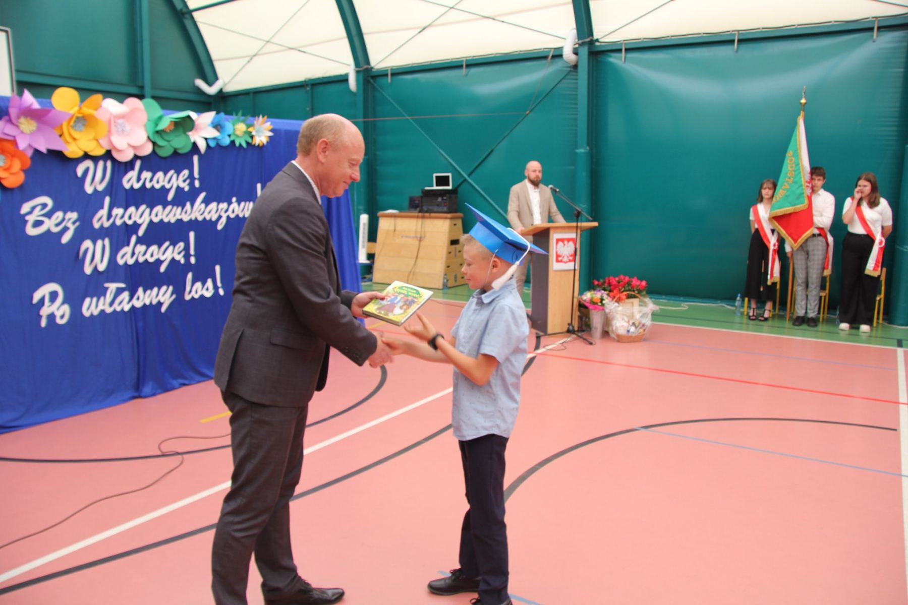 Ostatni dzwonek już za nami. Rok szkolny 2021/2022 dobiegł końca. Na uroczystości Pan Dyrektor Marek Grymbowski wręczył świadectwa i dyplomy dla najzdolniejszych uczniów oraz podziękowania dla rodziców za trud i wychowanie tak wspaniałych dzieci. Słowa wdzięczności i podziękowania za pracę skierował również do wszystkich nauczycieli, pracowników szkoły, rodziców i uczniów. Tym samym życząc owocnej pracy w przyszłym roku szkolnym. Pożegnaliśmy również najstarszych uczniów naszej szkoły, którzy opuszczają mury oraz Panią Bożenkę, która po wieloletniej pracy dydaktycznej przechodzi na zasłużoną emeryturę.