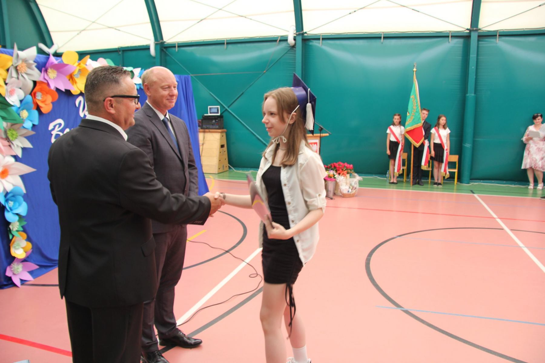Ostatni dzwonek już za nami. Rok szkolny 2021/2022 dobiegł końca. Na uroczystości Pan Dyrektor Marek Grymbowski wręczył świadectwa i dyplomy dla najzdolniejszych uczniów oraz podziękowania dla rodziców za trud i wychowanie tak wspaniałych dzieci. Słowa wdzięczności i podziękowania za pracę skierował również do wszystkich nauczycieli, pracowników szkoły, rodziców i uczniów. Tym samym życząc owocnej pracy w przyszłym roku szkolnym. Pożegnaliśmy również najstarszych uczniów naszej szkoły, którzy opuszczają mury oraz Panią Bożenkę, która po wieloletniej pracy dydaktycznej przechodzi na zasłużoną emeryturę.