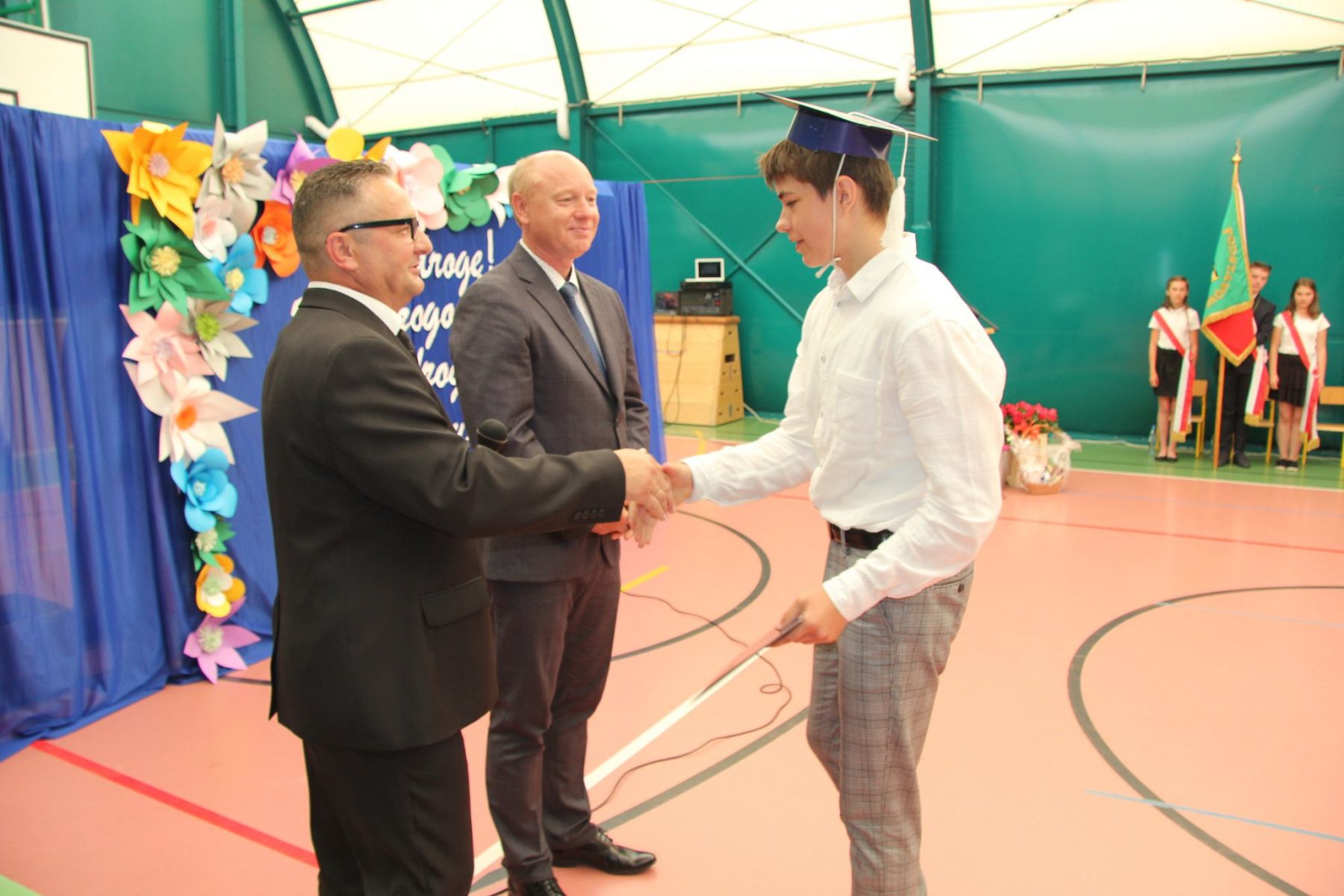 Ostatni dzwonek już za nami. Rok szkolny 2021/2022 dobiegł końca. Na uroczystości Pan Dyrektor Marek Grymbowski wręczył świadectwa i dyplomy dla najzdolniejszych uczniów oraz podziękowania dla rodziców za trud i wychowanie tak wspaniałych dzieci. Słowa wdzięczności i podziękowania za pracę skierował również do wszystkich nauczycieli, pracowników szkoły, rodziców i uczniów. Tym samym życząc owocnej pracy w przyszłym roku szkolnym. Pożegnaliśmy również najstarszych uczniów naszej szkoły, którzy opuszczają mury oraz Panią Bożenkę, która po wieloletniej pracy dydaktycznej przechodzi na zasłużoną emeryturę.