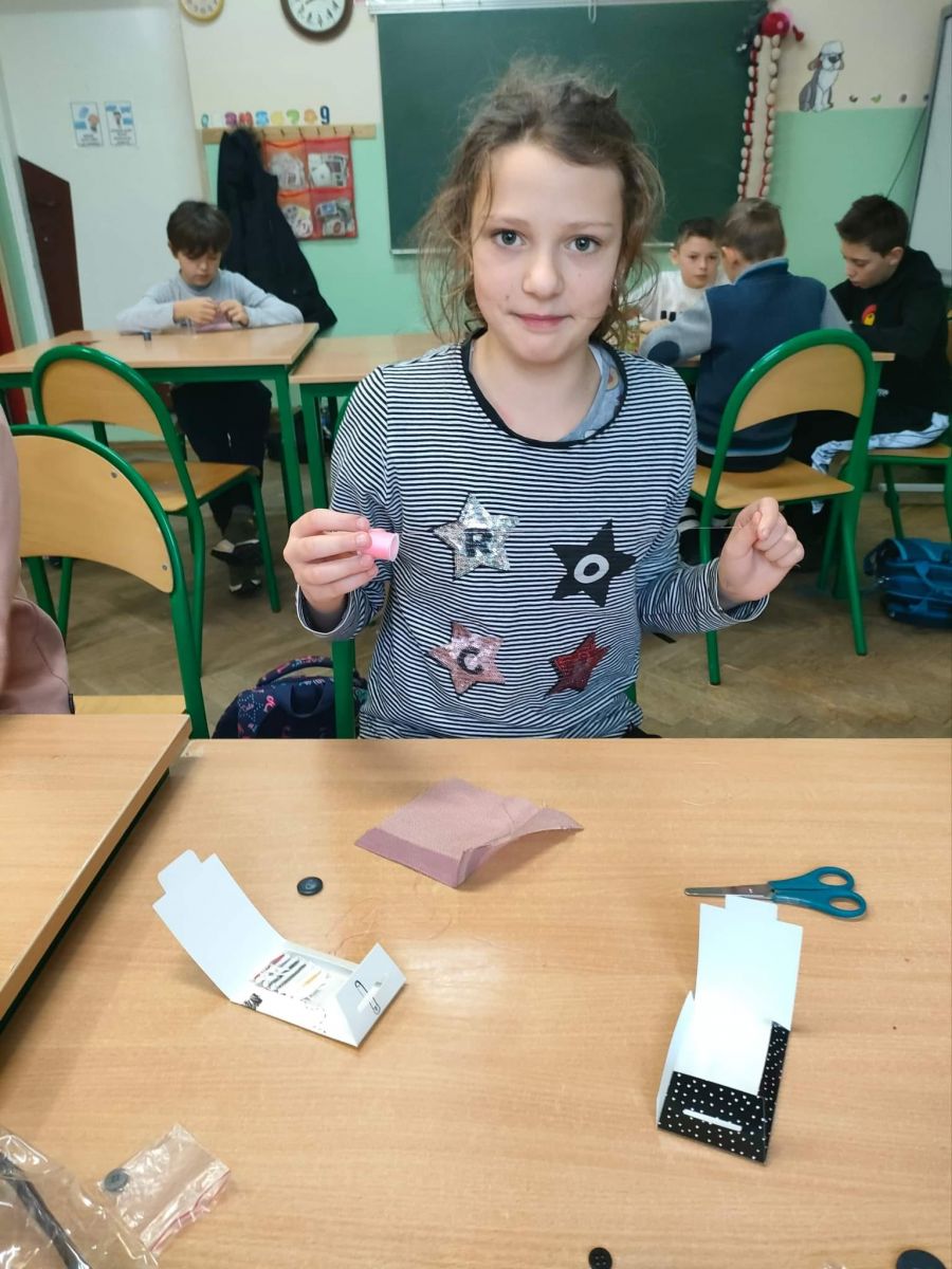 W tym tygodniu tematem zajęć świetlicowych są różnego rodzaje talenty. Dlatego też klasa czwarta postanowiła spróbować swoich sił w szyciu. Zaczęli od podstawowej rzeczy, a mianowicie od nauki przyszywania guzików.