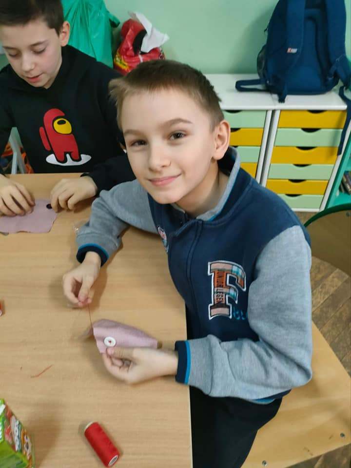 W tym tygodniu tematem zajęć świetlicowych są różnego rodzaje talenty. Dlatego też klasa czwarta postanowiła spróbować swoich sił w szyciu. Zaczęli od podstawowej rzeczy, a mianowicie od nauki przyszywania guzików.