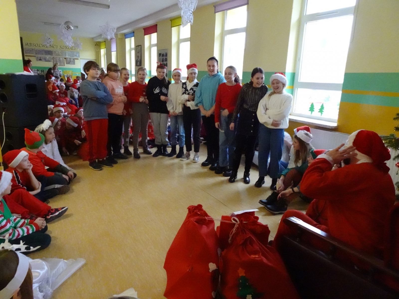 Szóstego grudnia, jak dobrze wiecie Święty Mikołaj chodzi po świecie. Odwiedza domy, przedszkola i szpitale. Ale o naszej szkole też nie zapomniał wcale. Dlatego jest On taki Święty, co dużym i małym przynosi prezenty.