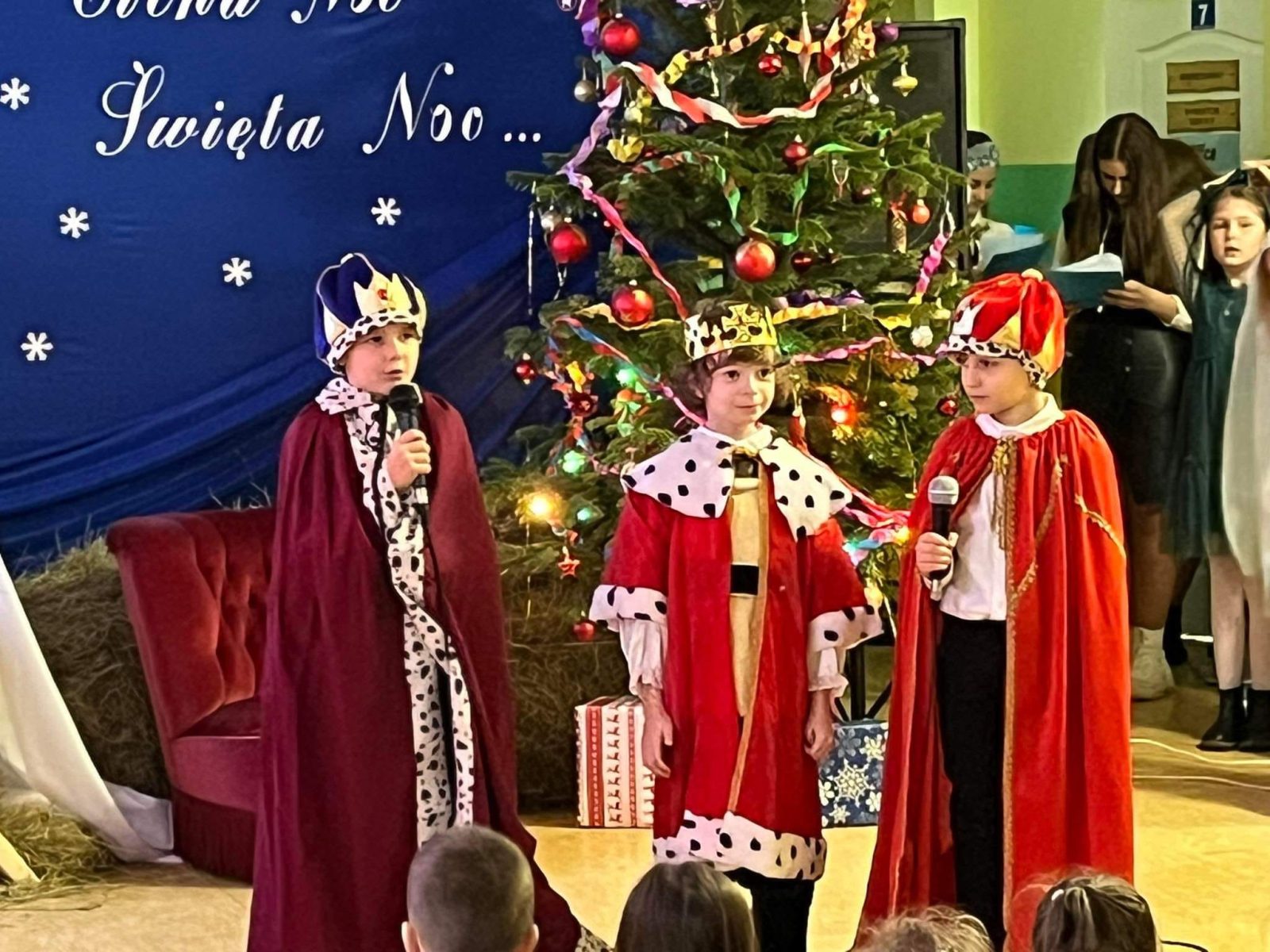 Dzisiaj w naszej szkole panowała wyjątkowo świąteczna atmosfera, a wszystko za sprawą Jasełek przygotowanych przez uczniów klas: II, III, IV i VI.Dzieci z dużym zaangażowaniem odgrywały swoje role. Uroku dodawały kolędy zaśpiewane przez uczniów klasy VIII.