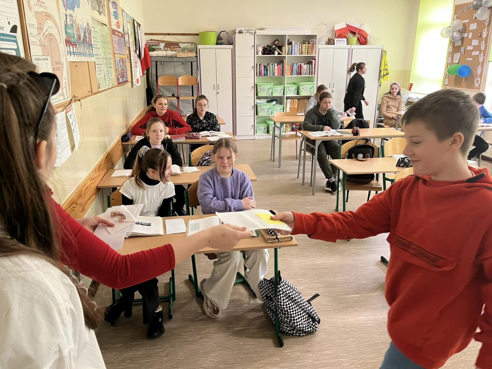 Samorząd Uczniowski wraz z klasą VII miał pełne ręce roboty! Całe szczęście wszystkie kartki dotarły do odbiorców