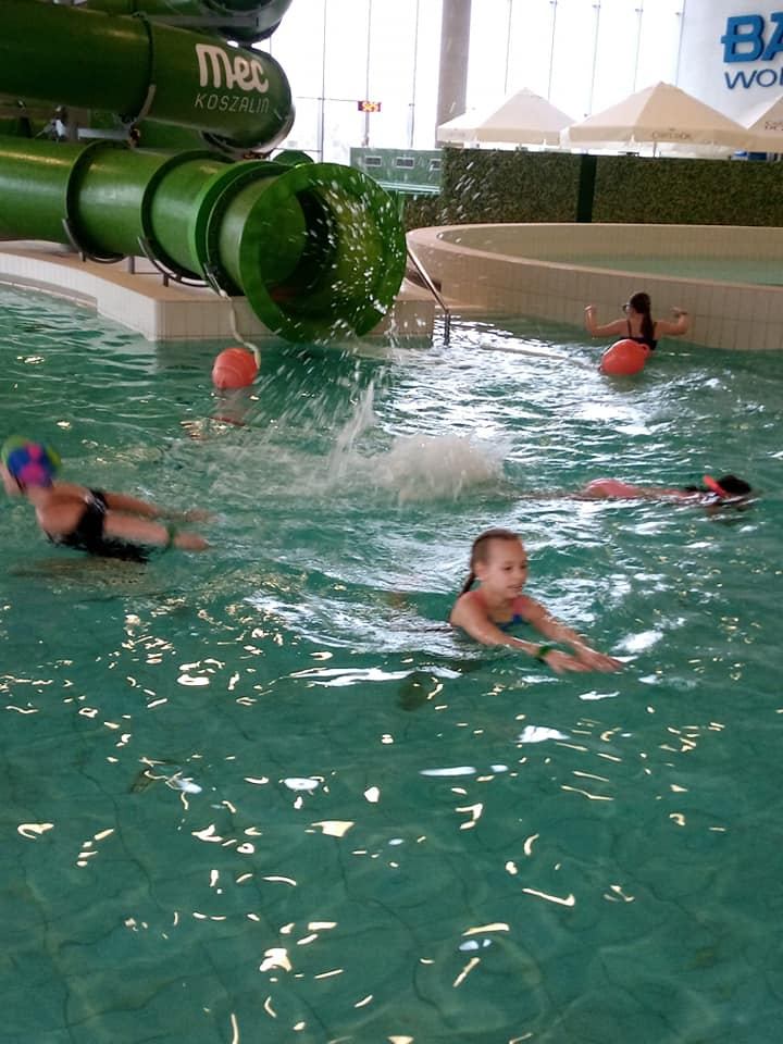 W ramach realizowanego w szkole programu „Trzymaj formę” uczniowie klasy IV wybrali się na wycieczkę do Parku Wodnego w Koszalinie. Aktywnie spędzili dzień podczas zabaw w wodzie, a także na wspólnych rozmowach. Były zjazdy, skoki, ślizgi a nawet nauka pływania. Niektórzy uczniowie przełamali swój lęk zjeżdżając że zjeżdżalni.