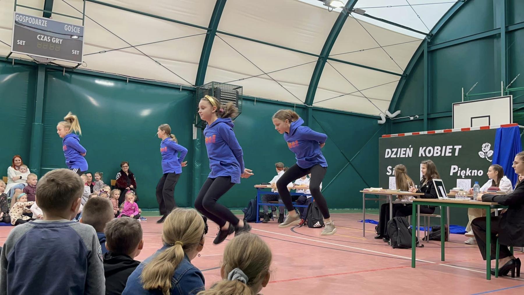 Był to swoisty przegląd talentów: piłka nożna, jazda konna, taniec, gra na instrumentach. Wisienką na torcie był śpiew w wykonaniu chłopców z zerówki pod wodzą Janka z klasy VI. Samorząd Uczniowski obdarował wszystkie Panie kwiatami, po czym w świetnych humorach wróciliśmy do swoich obowiązków.
