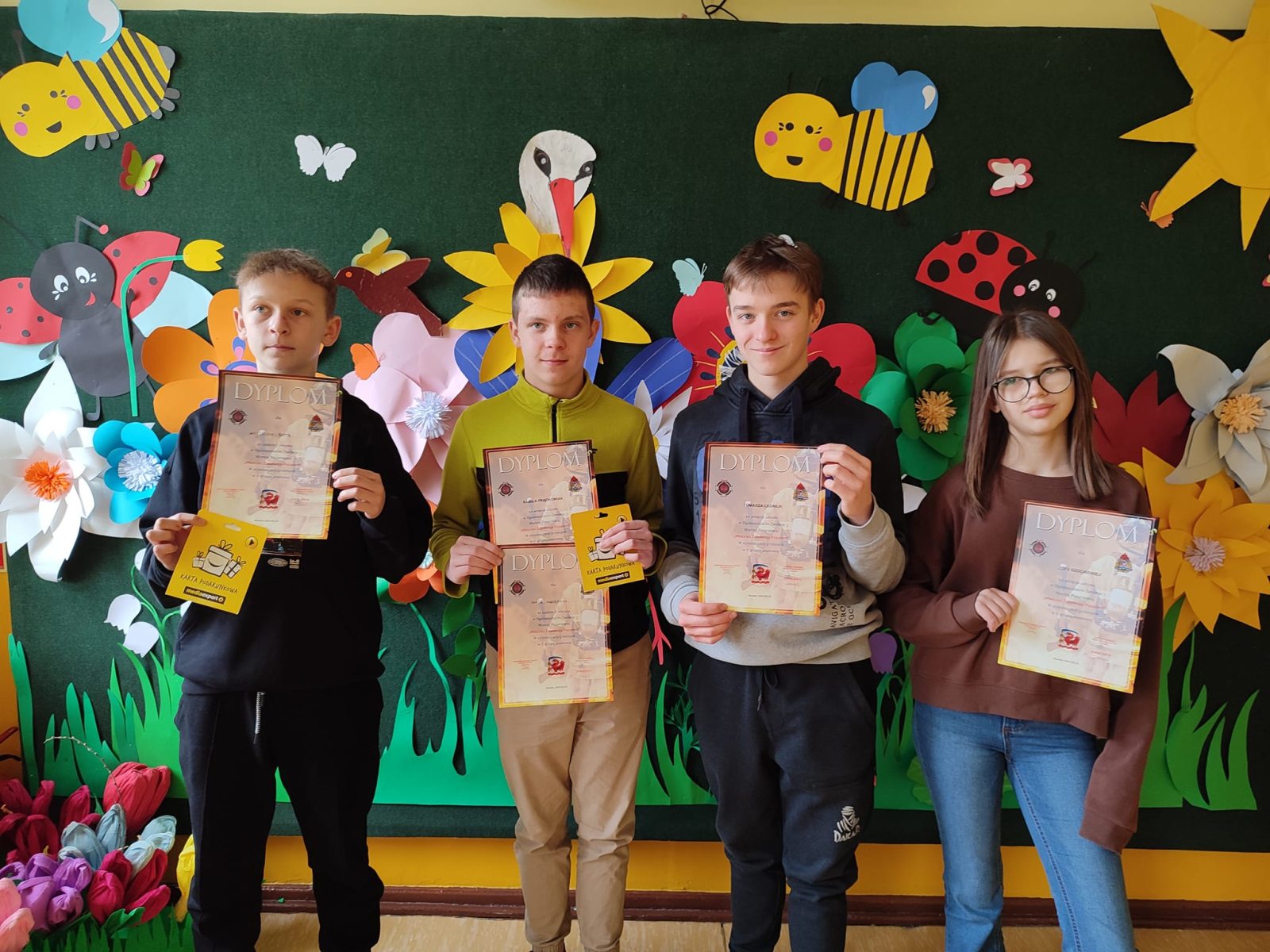 Dzisiaj w gminnych eliminacjach Ogólnopolskiego Turnieju Wiedzy Pożarniczej ,,Młodzież Zapobiega Pożarom”, które odbyły się w Jednostce Ratowniczo – Gaśniczej Państwowej Straży Pożarnej w Miastku czworo naszych uczniów wzięło udział w teście wiedzy skonstruowanym z 25 pytań. Rywalizacja była wielka, dogrywki emocjonujące ale udało się wywalczyć miejsca na podium.