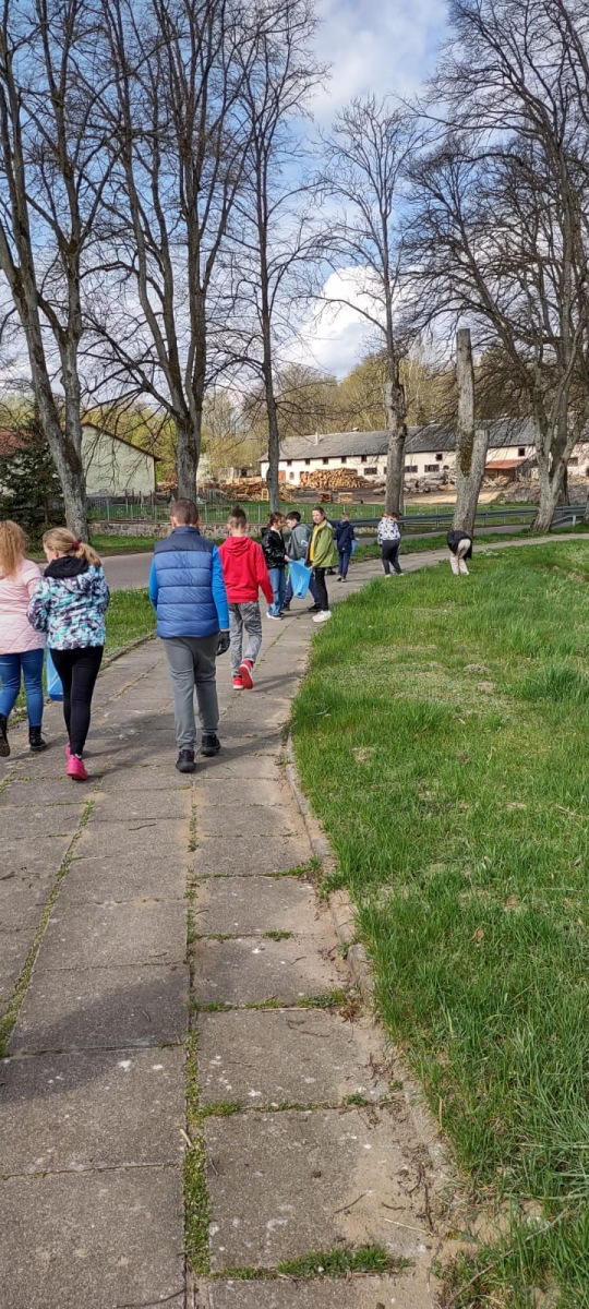 Nasi uczniowie po wiedzy teoretycznej zabrali się do pracy. Zakasali rękawy i wspólnymi siłami wysprzątali teren wokół szkoły oraz pobliskie tereny. Teraz z wielką przyjemnością patrzy się na rozkwitające wokół drzewa i krzewy.