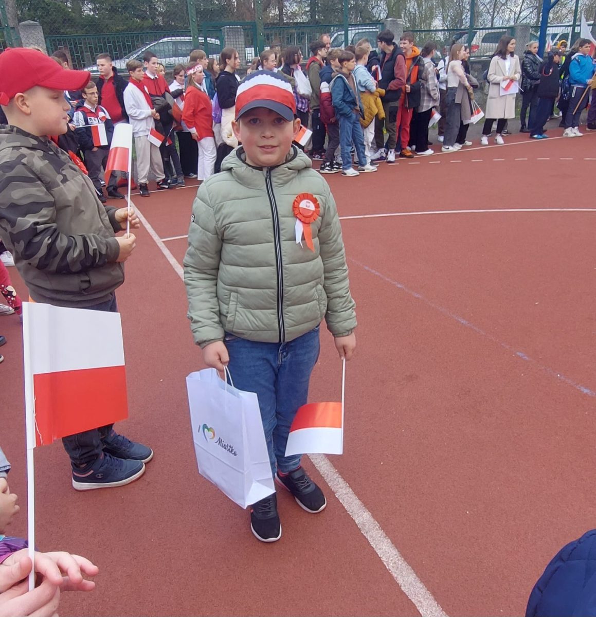 Rajd w Barwach Narodowych przez admin | 28 kwietnia, 2023 0 komentarzy Rajd w Barwach Narodowych Dzisiaj uczniowie naszej szkoły mieli przyjemność wziąć udział w rajdzie ulicami Miastka, aby uczcić tak ważne dla naszego kraju zbliżające się święta majowe. 343447314_617511300420184_4898527406358065879_n Zdjęcie 2 z 12