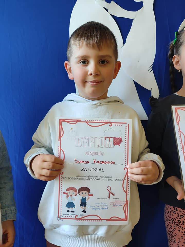 którzy wzięli udział w konkursie plastycznym – technicznym ,,Polskie symbole narodowe w oczach dziecka” otrzymali nagrody z wydział w konkursie.