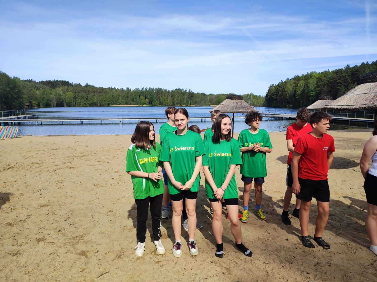 Piłka plażowa chłopców i dziewcząt eliminacje gminne w Miastku jezioro Lednik. Nasze dziewczęta zajęły miejsce III, a chłopcy miejsce II.