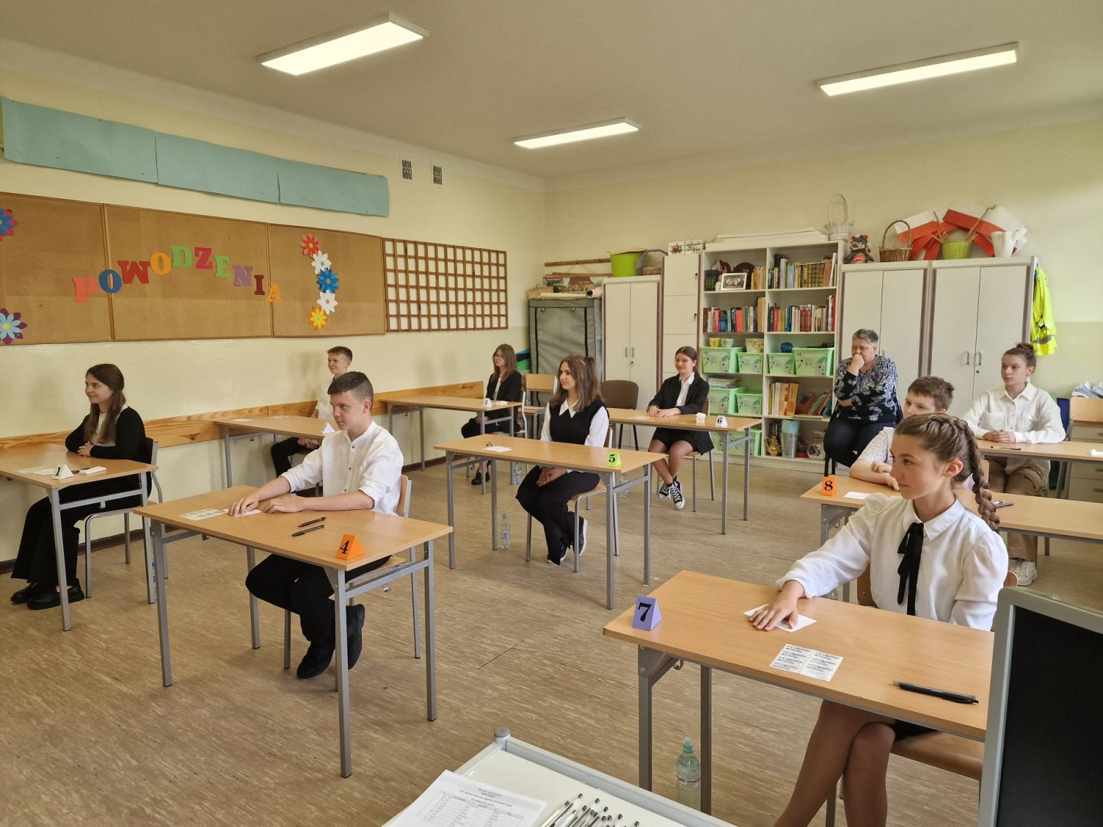 Po wylosowaniu numeru stolika, z uśmiechem na twarzy zasiedli do swoich miejsc i cierpliwie czekali na arkusze. Kiedy już je otrzymali z wielkim zapałem ruszyli do napisania rozprawki.