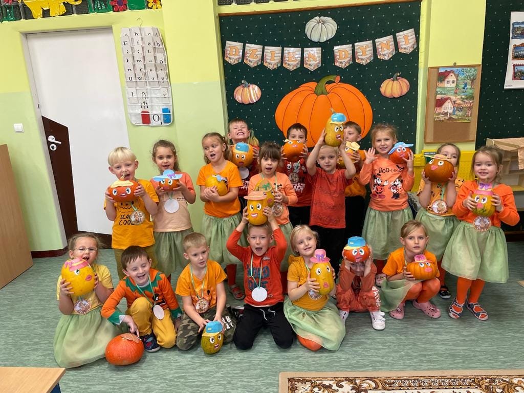 Przedszkolaki uczestniczyły w zajęciach podczas, których poznaliśmy bardzo zdrowe i urodziwe warzywo jakim jest dynia. Tego dnia przynieśliśmy do szkoły dynie i ubraliśmy się na kolor pomarańczowy.