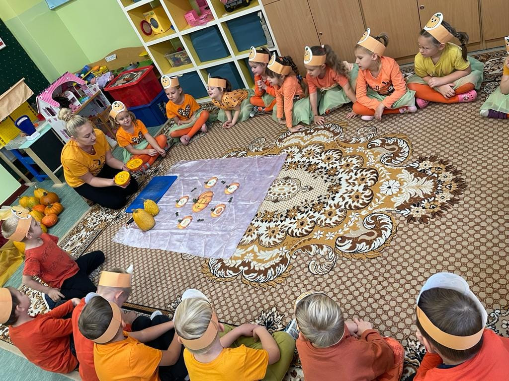 Przedszkolaki uczestniczyły w zajęciach podczas, których poznaliśmy bardzo zdrowe i urodziwe warzywo jakim jest dynia. Tego dnia przynieśliśmy do szkoły dynie i ubraliśmy się na kolor pomarańczowy.