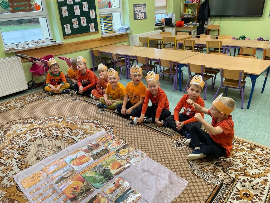 Przedszkolaki uczestniczyły w zajęciach podczas, których poznaliśmy bardzo zdrowe i urodziwe warzywo jakim jest dynia. Tego dnia przynieśliśmy do szkoły dynie i ubraliśmy się na kolor pomarańczowy.