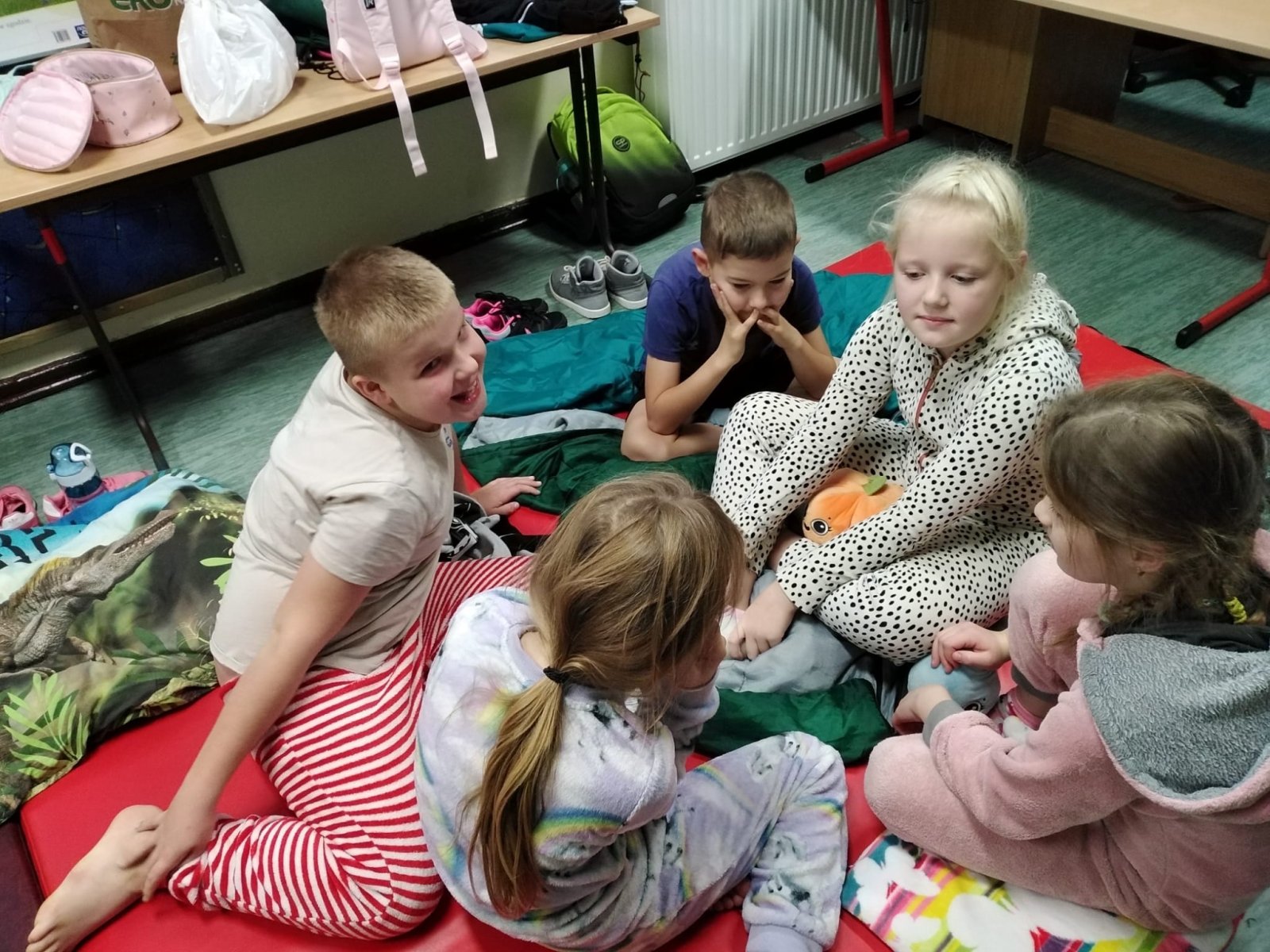 Nocowanie w szkole przez admin | 27 października, 2023 0 komentarzy Klasa druga miała możliwość nocowania w szkole 20-21.10.2023. Każdy z uczestników miał że sobą zabrać dobry humor. Było dużo zabaw, które wywoływały uśmiech na twarzach dzieci. 396445122_812222214237353_4130097179138469882_n Zdjęcie 12 z 17
