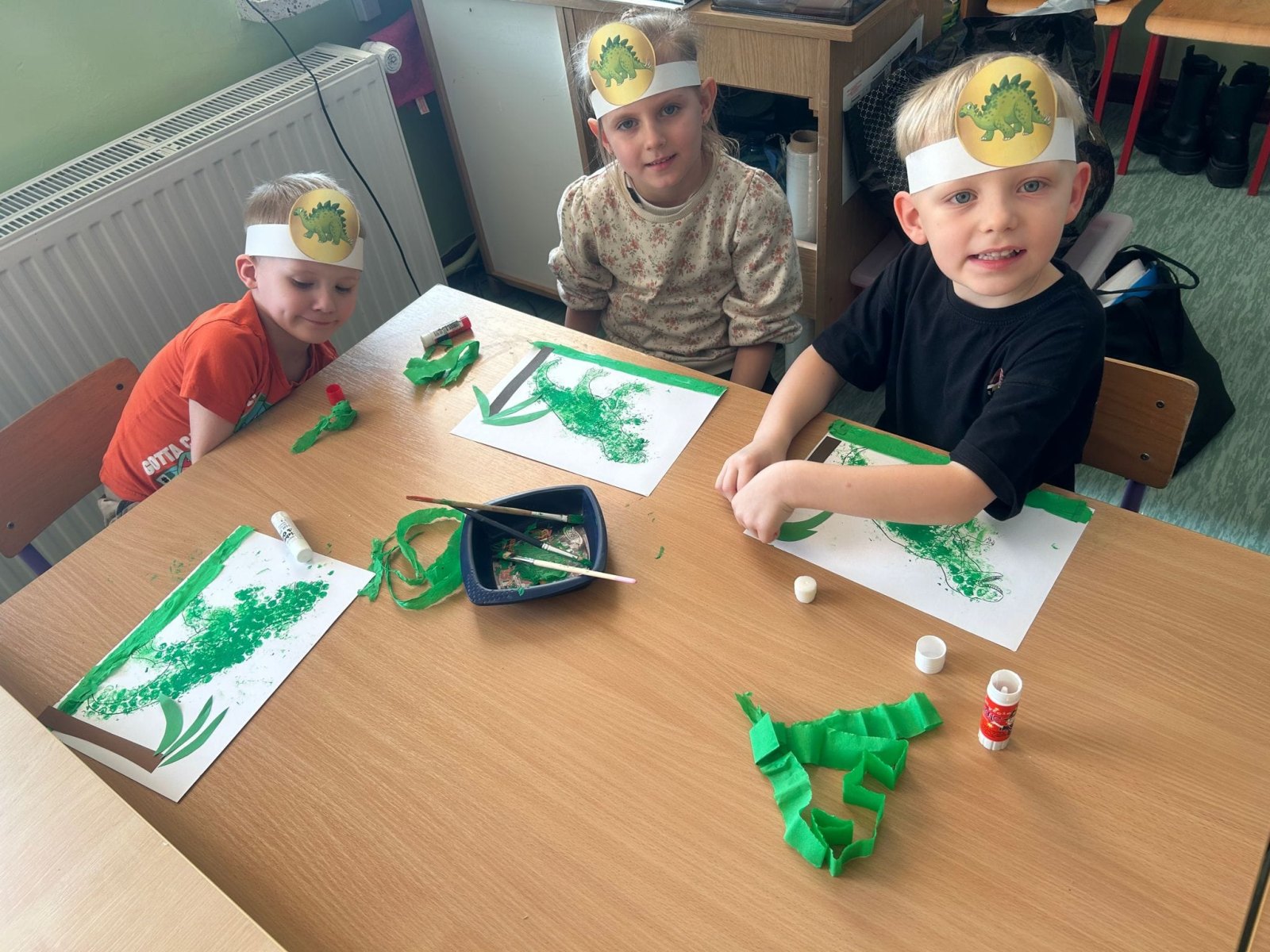 Dziś obchodziliśmy święto znanych, prehistorycznych stworzeń. Dzieci poznały historię dinozaurów, dowiedziały się kiedy żyły, czym się żywiły i jak wyglądały. Rozmawialiśmy na temat pracy paleontologa i wspólnie dokonaliśmy ,,wykopalisk”.