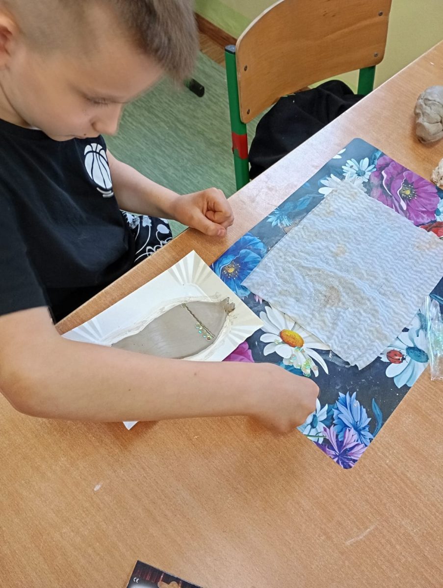 Światowy Dzień Ziemi, uczniowie klasy III pracowali w glinie, ich radości nie było końca.
