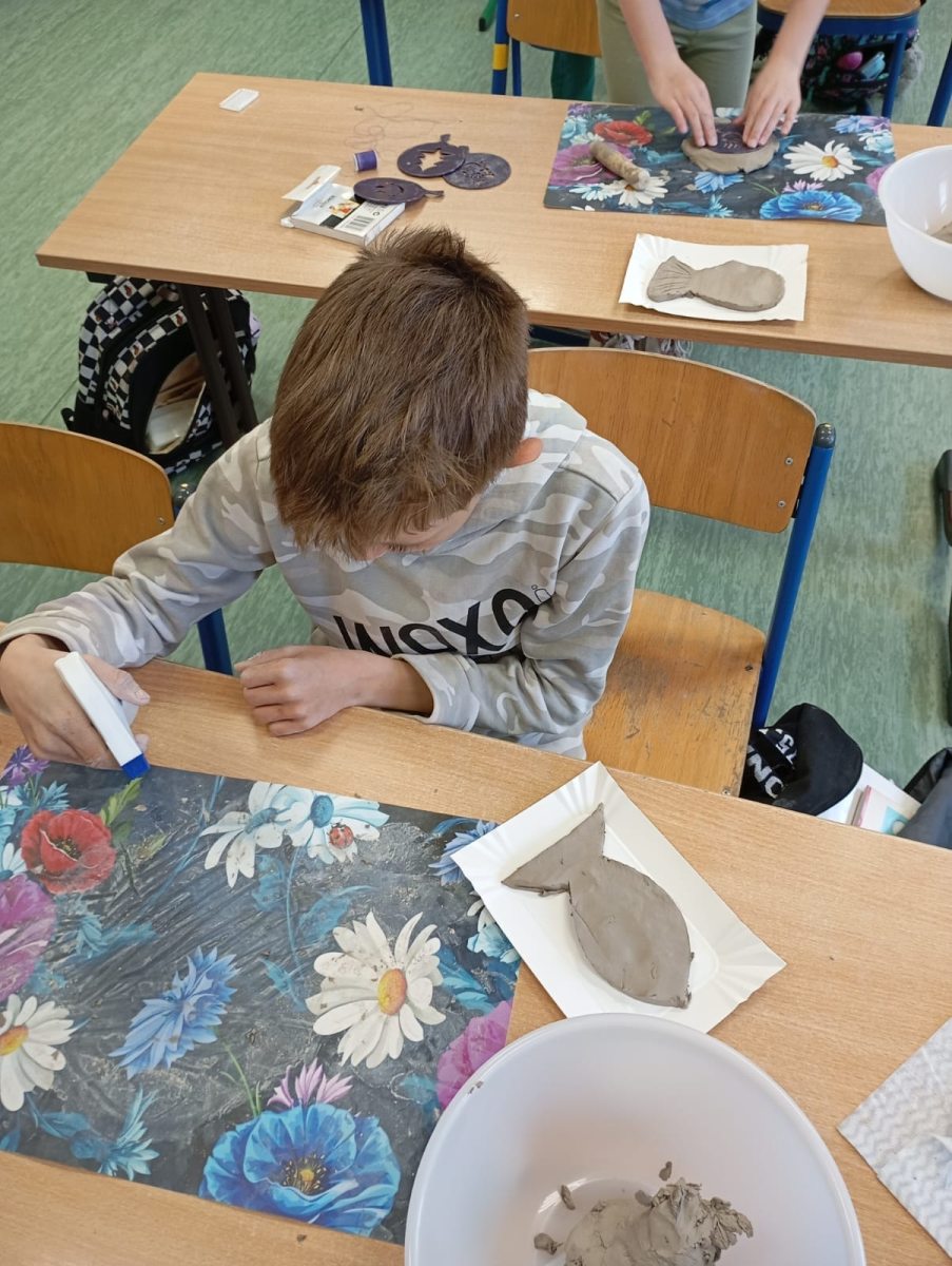 Światowy Dzień Ziemi, uczniowie klasy III pracowali w glinie, ich radości nie było końca.