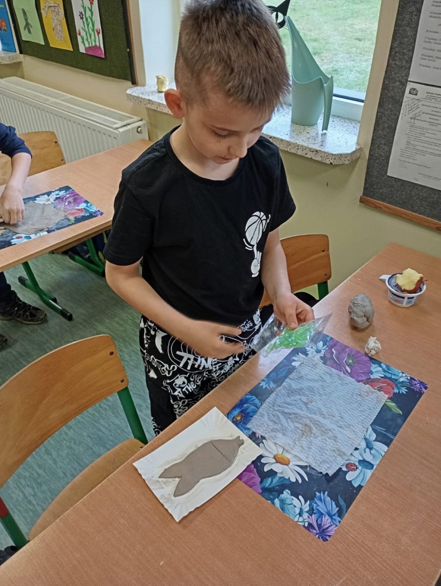 Światowy Dzień Ziemi, uczniowie klasy III pracowali w glinie, ich radości nie było końca.