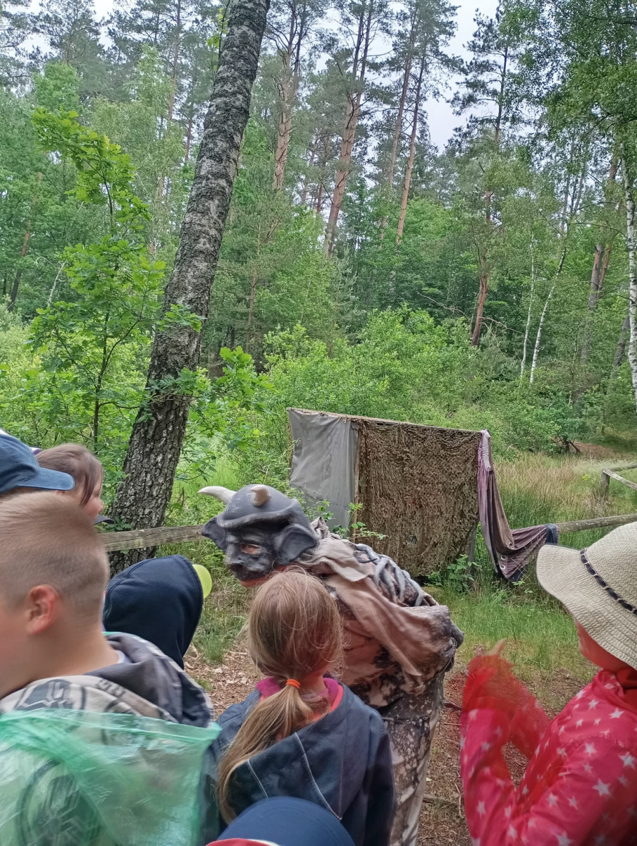 Bywało naprawdę strasznie i trudno – szczególnie, gdy porwali Panią Bogusię i przez chwilę myśleliśmy, że będziemy musieli organizować misję ratunkową…😅 Dzieci były bardzo zainteresowane, żywo reagowały na fantastyczne postacie, które czyhały na nas w lesie z różnymi zagadkami i zadaniami.