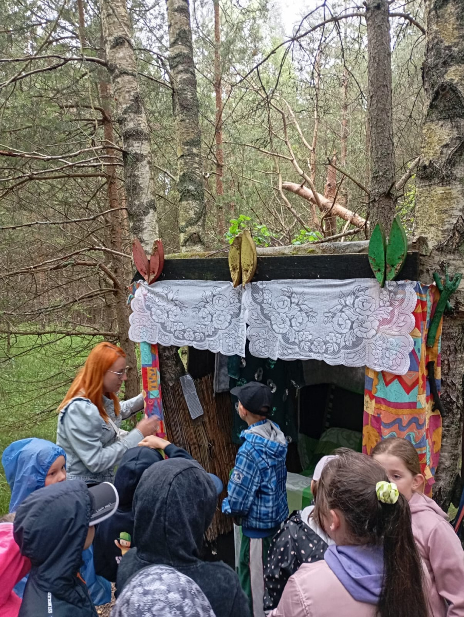 Bywało naprawdę strasznie i trudno – szczególnie, gdy porwali Panią Bogusię i przez chwilę myśleliśmy, że będziemy musieli organizować misję ratunkową…😅 Dzieci były bardzo zainteresowane, żywo reagowały na fantastyczne postacie, które czyhały na nas w lesie z różnymi zagadkami i zadaniami.