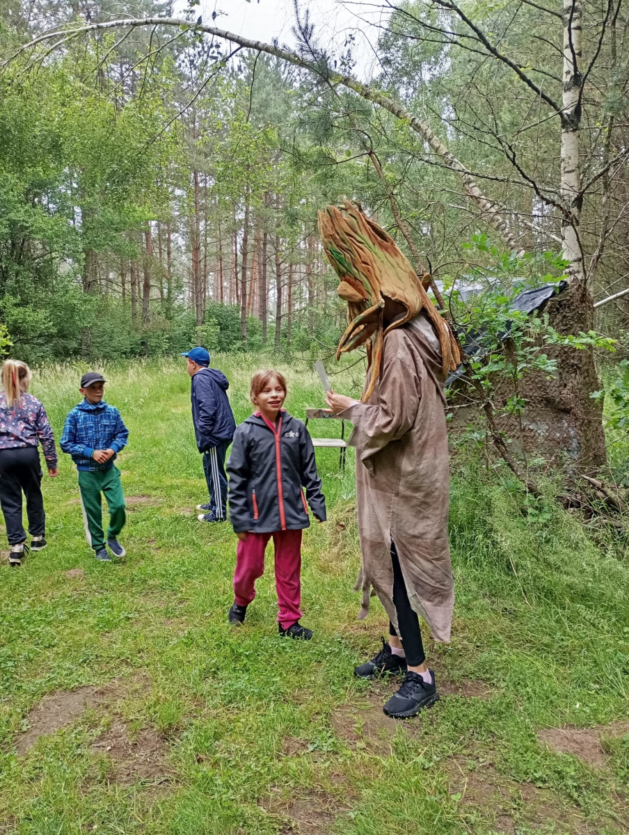Bywało naprawdę strasznie i trudno – szczególnie, gdy porwali Panią Bogusię i przez chwilę myśleliśmy, że będziemy musieli organizować misję ratunkową…😅 Dzieci były bardzo zainteresowane, żywo reagowały na fantastyczne postacie, które czyhały na nas w lesie z różnymi zagadkami i zadaniami.