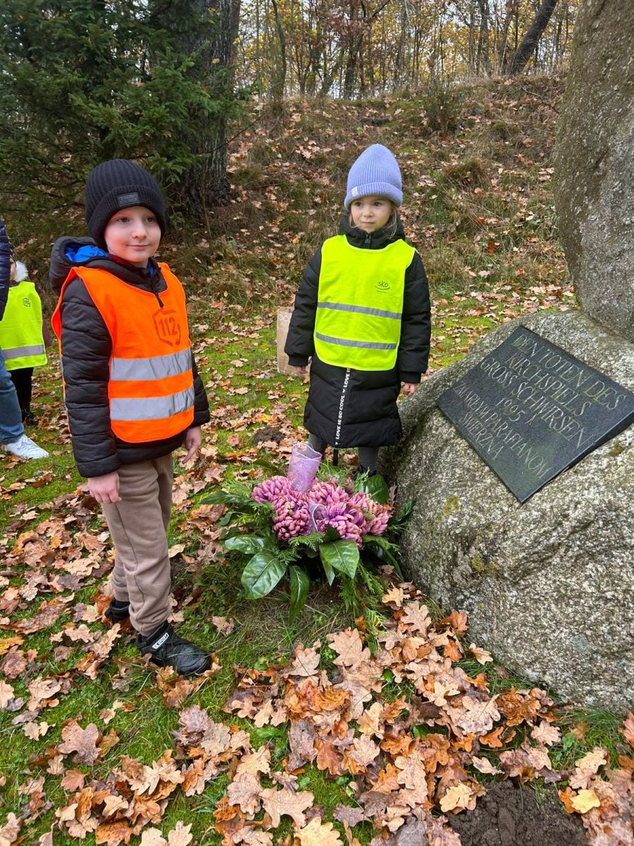 Do akcji #szkołapamięta przyłączyły się również nasze najmłodsze dzieci, które złożyły wieniec i zapaliły znicz na cmentarzu w Świerznie, upamiętniając zmarłych mieszkańców wsi.