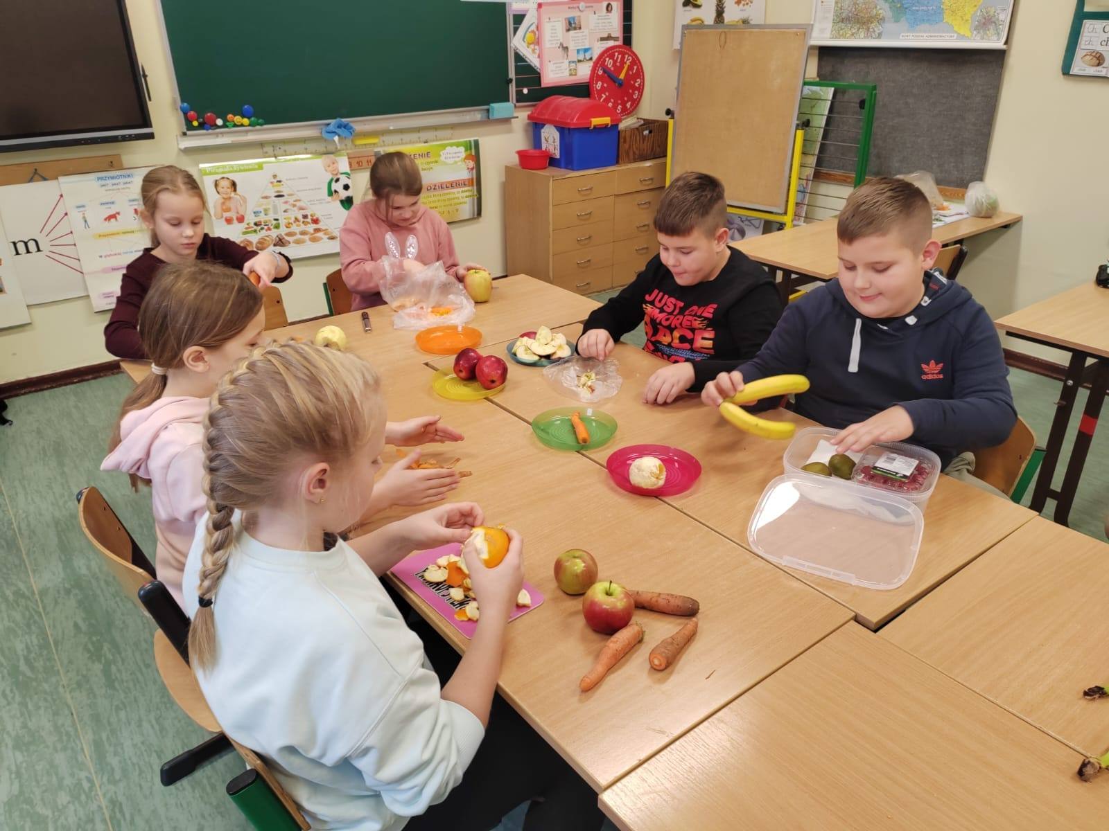 W ramach zajęć kształtujących kreatywność uczniowie klasy trzeciej nabyli umiejętność przygotowania soków owocowo – warzywnych. Jednocześnie poznały walory odżywcze warzyw i owoców oraz zasady bezpiecznego korzystania z sokowirówki. Przygotowany sok wyglądał apetycznie i cieszył się dużym powodzeniem.